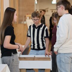 Bei der GMA-Präsentation der 8. Klasse Smaragd an der Montessori Schule Vilshofen zeigten die Schülerinnen und Schüler eindrucksvoll, was in einem Jahr intensiver Arbeit entstehen kann. Von handwerklichen Meisterstücken über kreative Projekte bis hin zu digitalen Ideen präsentierten sie ihre Ergebnisse vor rund 160 Gästen. Ein humorvolles Bühnenstück am „Monte Airport Vilshofen“ verband die Werkstücke auf originelle Weise zu einem gemeinsamen Erlebnis. Musikalische Begleitung der Schulband und kulinarische Köstlichkeiten sorgten für eine rundum gelungene Atmosphäre.