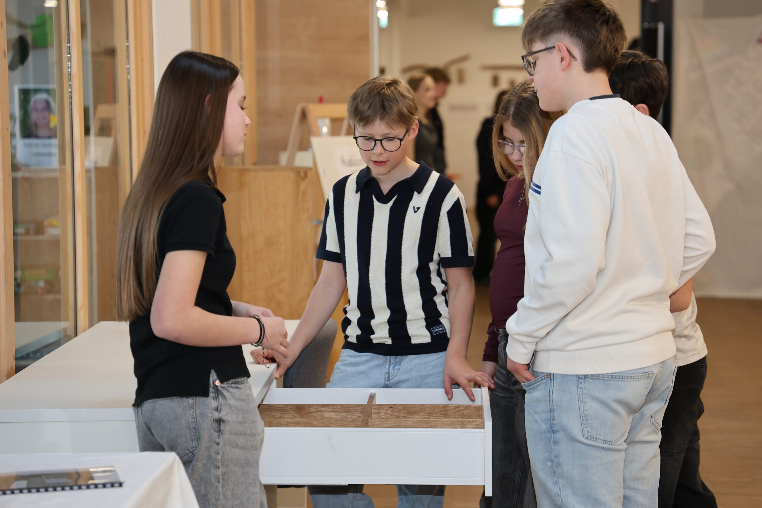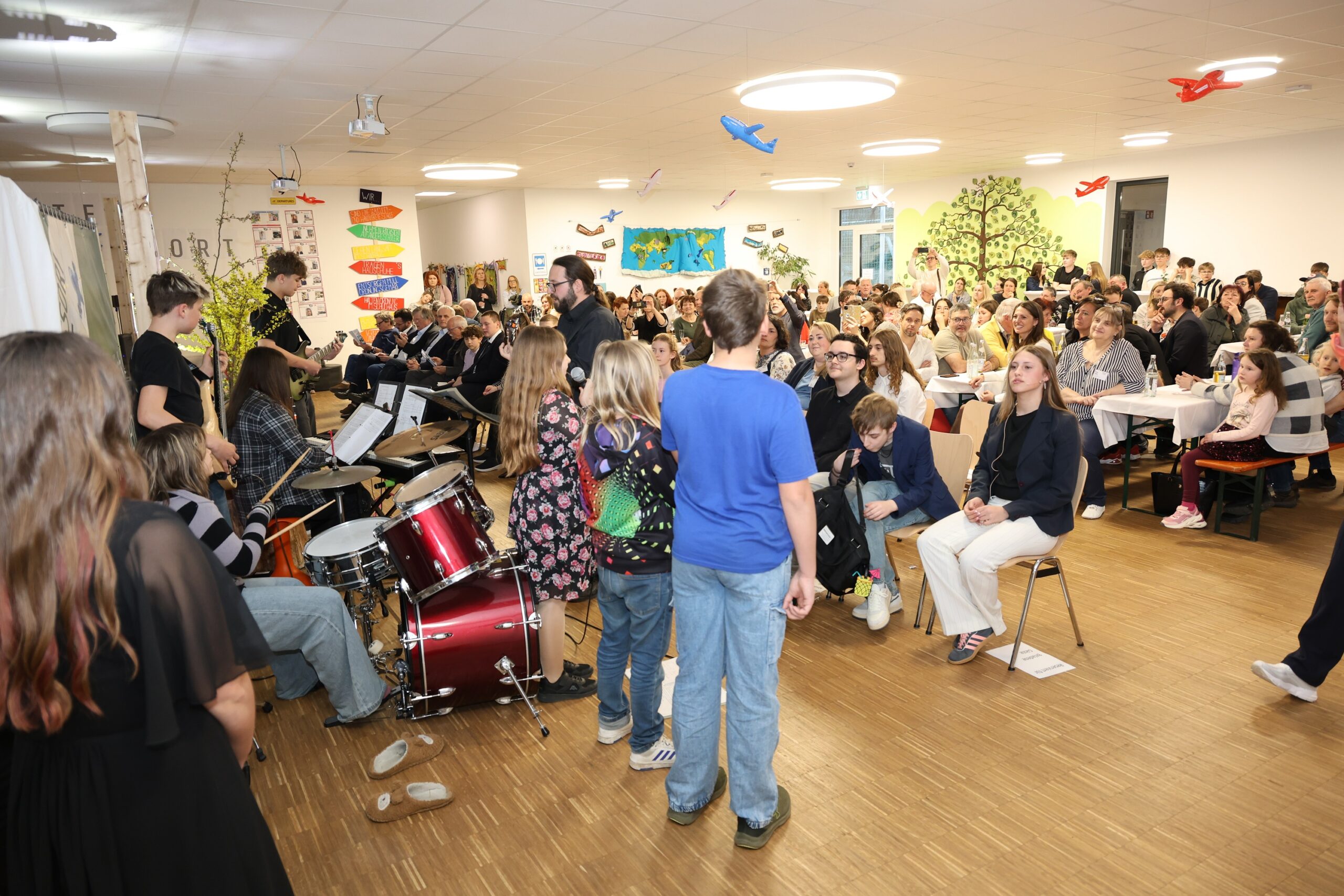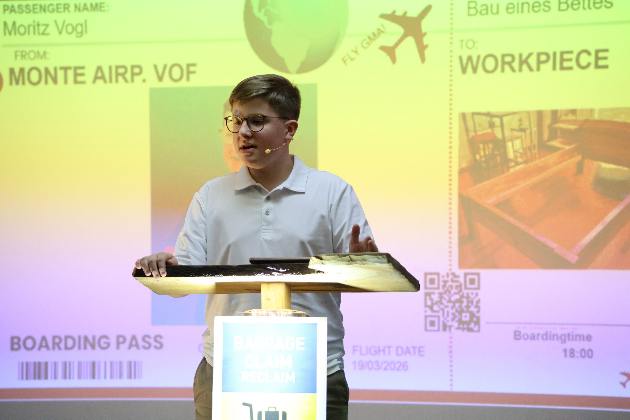 Bei der GMA-Präsentation der 8. Klasse Smaragd an der Montessori Schule Vilshofen zeigten die Schülerinnen und Schüler eindrucksvoll, was in einem Jahr intensiver Arbeit entstehen kann. Von handwerklichen Meisterstücken über kreative Projekte bis hin zu digitalen Ideen präsentierten sie ihre Ergebnisse vor rund 160 Gästen. Ein humorvolles Bühnenstück am „Monte Airport Vilshofen“ verband die Werkstücke auf originelle Weise zu einem gemeinsamen Erlebnis. Musikalische Begleitung der Schulband und kulinarische Köstlichkeiten sorgten für eine rundum gelungene Atmosphäre.